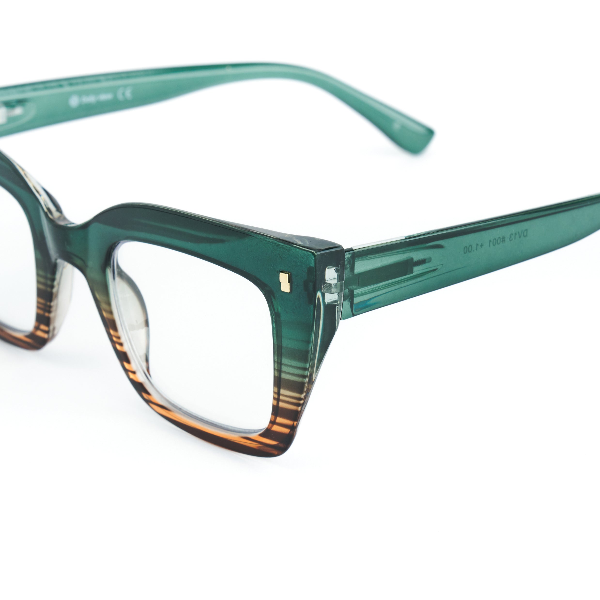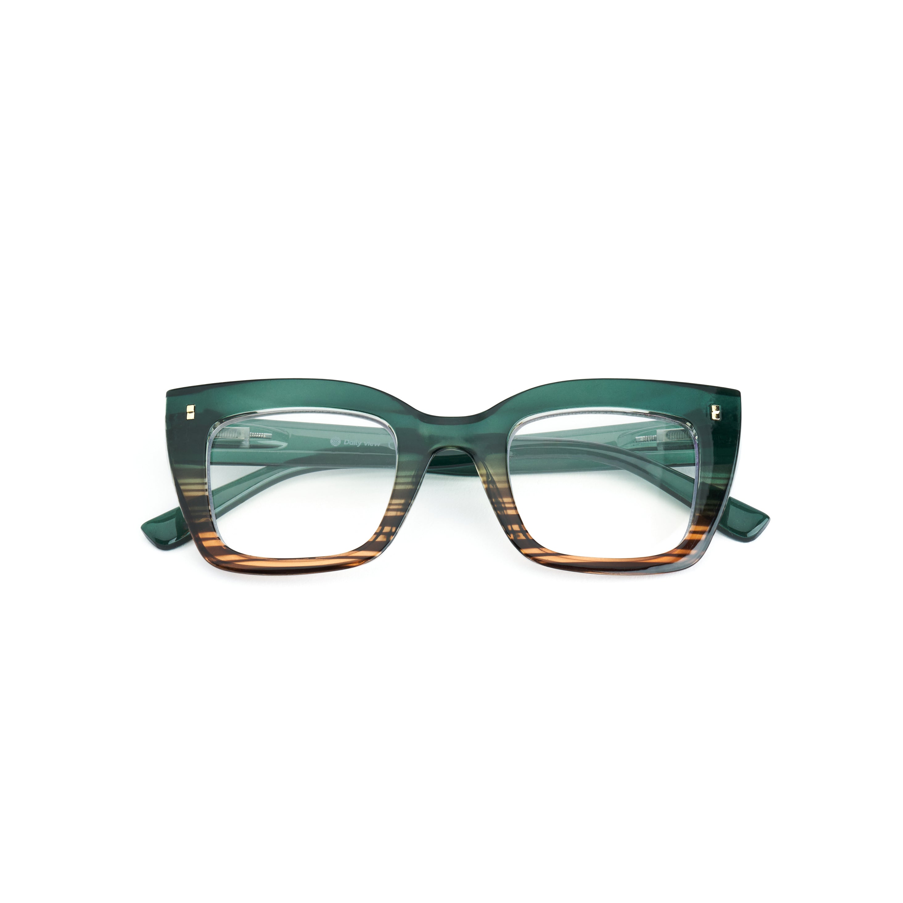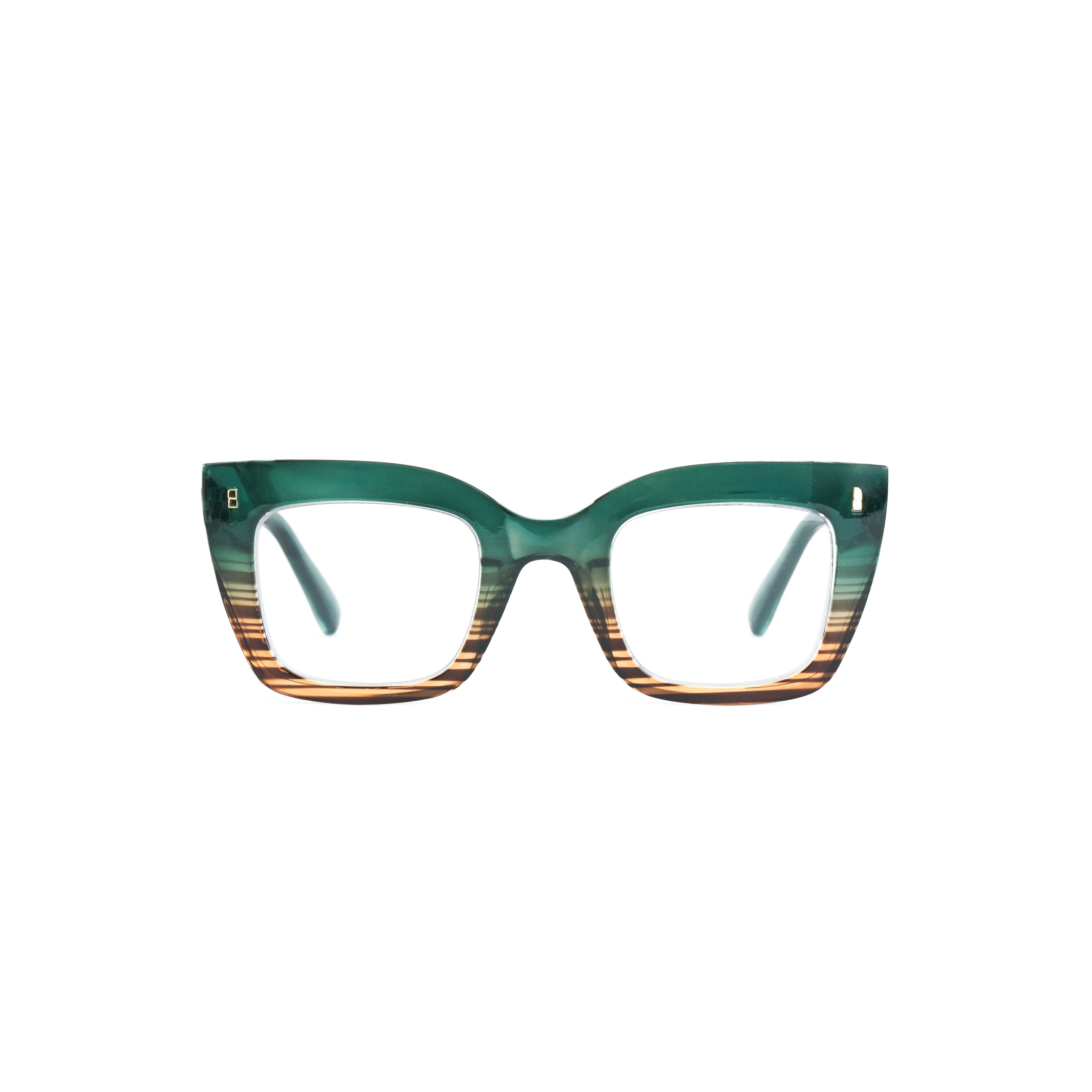 Il loro design geometrico Cat-Eye squadrato, impreziosito da un effetto verde smeraldo sfumato con righe avana, regala un look fresco e originale.