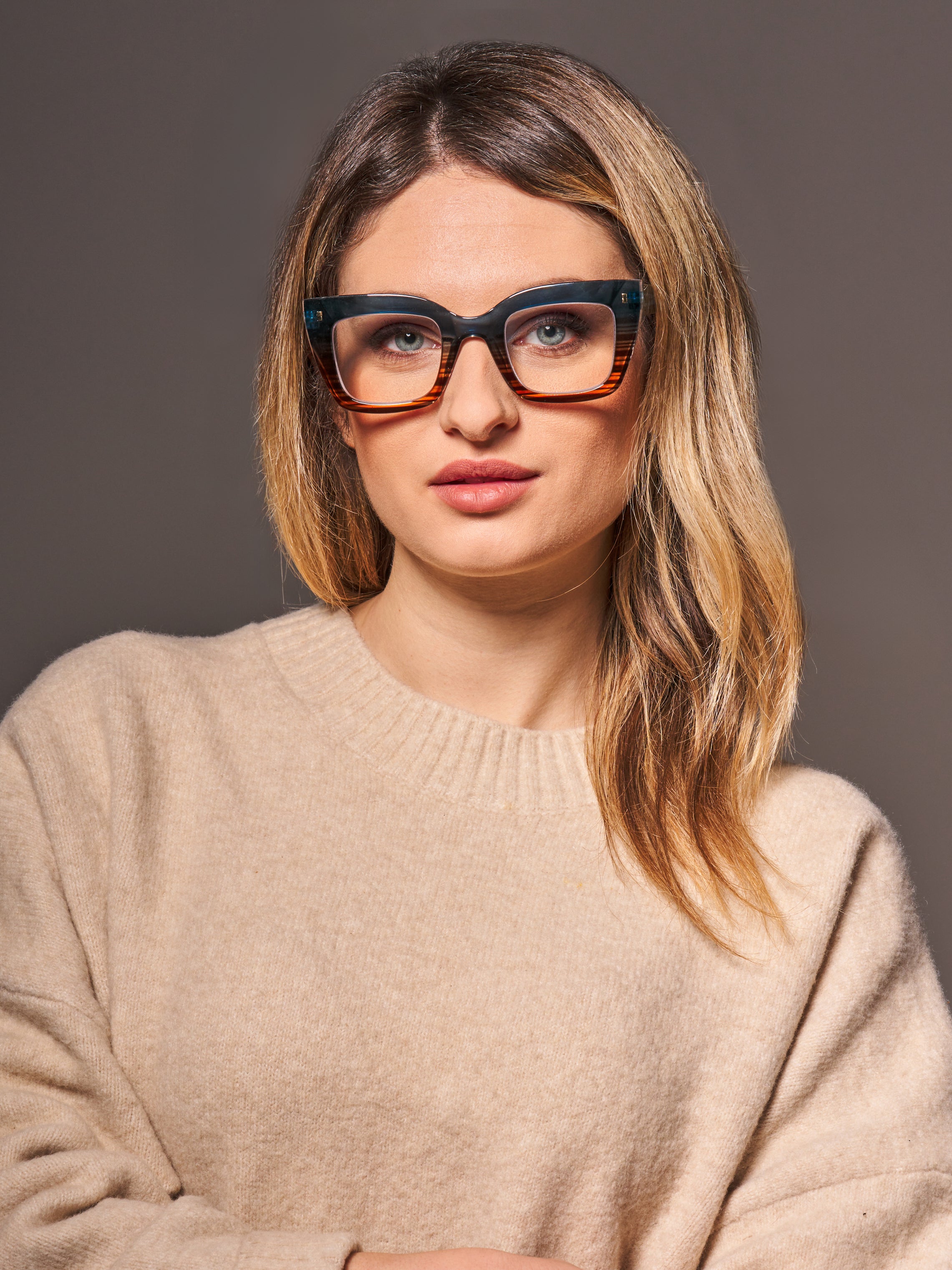 Il design Cat-Eye squadrato con profilo geometrico esalta i lineamenti con eleganza e carattere.
