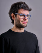Design essenziale e deciso per gli occhiali da lettura da uomo modello "Delfino", perfetti per leggere e proteggere gli occhi anche durante l’uso prolungato di schermi.